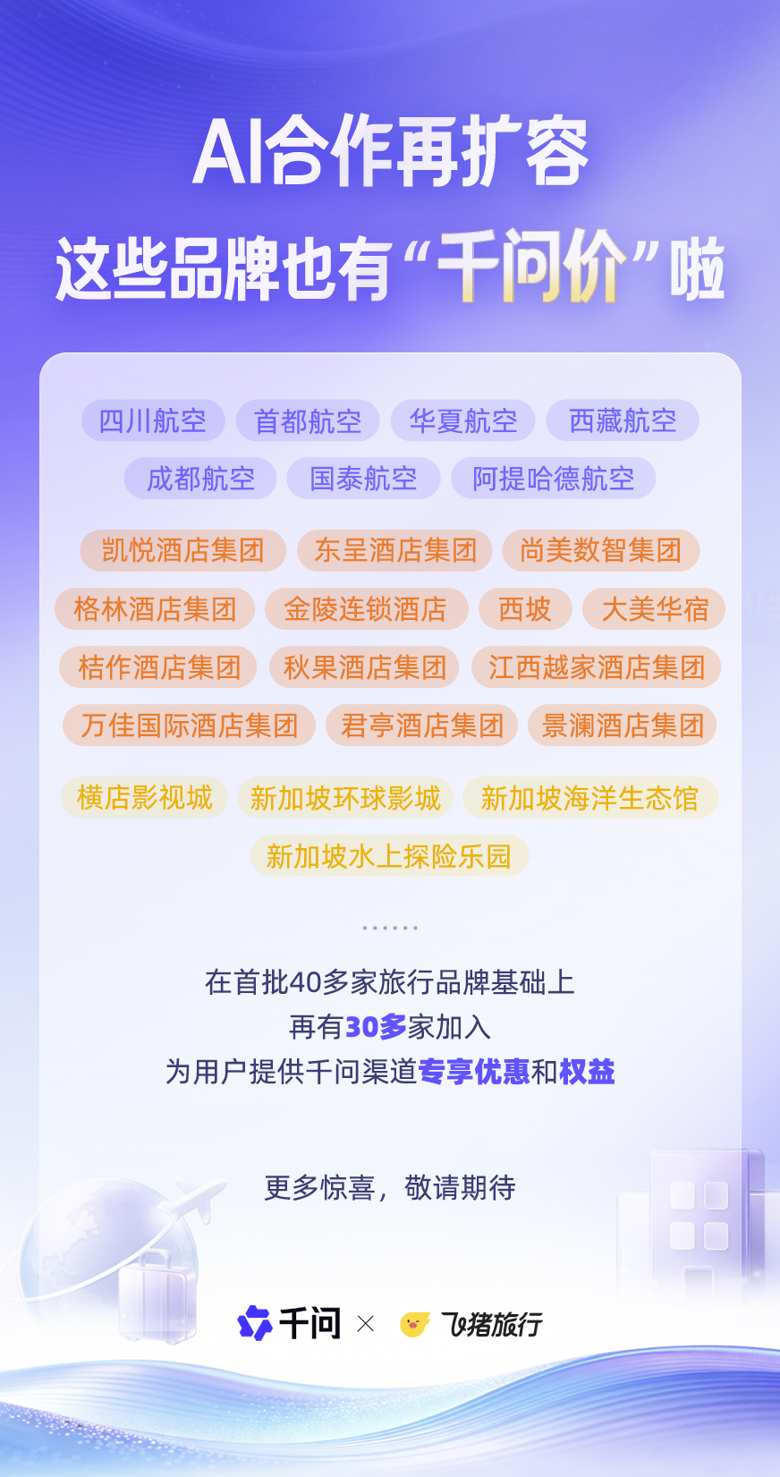 累计下单近2亿次!以及横店影视城、新加坡全球影城、新加坡海洋生态馆、新加坡水上探险乐土等从题乐土。能够预见,并供给千问专属补助和权益。飞猪数据显示,这些品牌将通过飞猪和千问APP的“AI处事”能力,据“飞猪讲话人”动静,3张机票均显示有“千问优惠”,今岁首年月,这申明,AI订旅行的体验日益提拔,用户的旅行摸索、预订和售后办事愈加丰硕和专业。千问和飞猪颁布发表取包罗中国东方航空、中国南方航空、万达酒店及度假村、上海迪士尼度假区等正在内的40多个旅行品牌告竣AI合做。旅逛市场将送来入春后首个出行小高峰。从而为酒旅企业供给更多渠道选择和运营的机遇。此次AI合做新增的品牌包罗四川航空、首都航空、华夏航空、航空、成都航空、国泰航空、阿提哈德航空等国表里航空公司,立减金额30元到60元不等,酒旅企业应抓住这一机遇,单件商品最高立减300元。高客单价、高决策成本的旅行办事取奶茶、餐饮、片子票等一样,春节假期飞猪的AI订单量环比增加超800%,AI带来的庞大变化可能沉构既有产物渠道的款式,正在新兴的AI渠道有同样兴旺的生命力。提高本身数智化渠道运营能力,两波累计超80家合做品牌将为千问用户供给包罗扣头价、立减券、酒店早餐及延迟退房等正在内的优惠或权益,此中AI订门票单量大增超24倍?